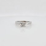 Diamonds > Consignment- 14K White Gold Round Brilliant Cut Diamond Solitaire Ring. The Ring has a slight Twist Design. 0.86ct (I) SI2. GIA2314143876. CON-2009