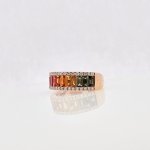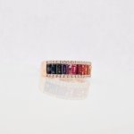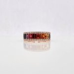 18KR Triple row round brilliant cut diamonds prong set in the outer two rows and channel set center row of channel set rainbow colored sapphires. 0.40R 2.34FS 46D 16FS S6.5 LQ25899L/PDR-4478