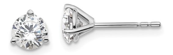 One Pair of Lab Grown Round Brilliant Cut Diamond Solitaire Studs. 14K White Gold 3-Prong Setting. 1.50ctw. (F+) VS #EM1007-150-WLD. LD-1184
