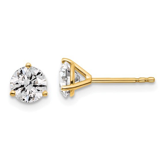 One Pair of Lab Grown Round Brilliant Cut Diamond Studs. 14K Yellow Gold. 3-Prong Setting. 1.50ctw (F+) VS+. #EM1007-150-LD. LD-2008
