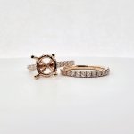 18KY Diamond "Wedding Set". Engagement Ring-Diamond Hidden Halo with a Diamond Shank and Diamond Undergallery. Band-Single Row of Prong Set RBC Diamonds. Eng Ring-.47R-38dia. Band-.36R-14dia. Size 6.5. 2.5ct head. #LQ24146L. PDR-4348